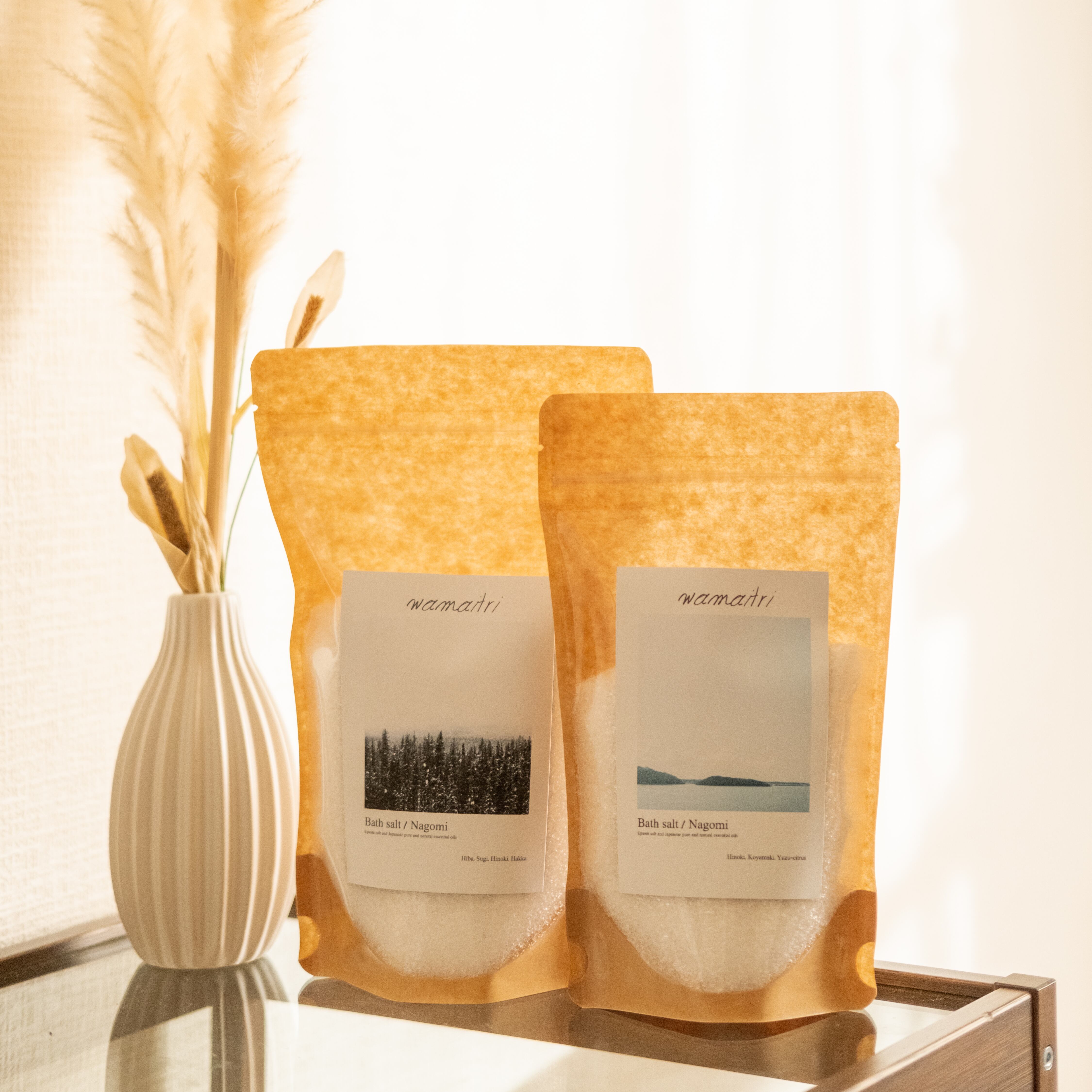 国産の天然精油100%をブレンドした、和の香りバスソルトで日々のセルフケアを。